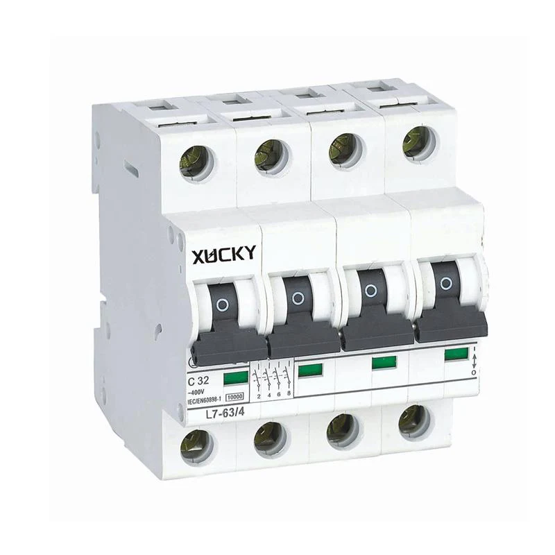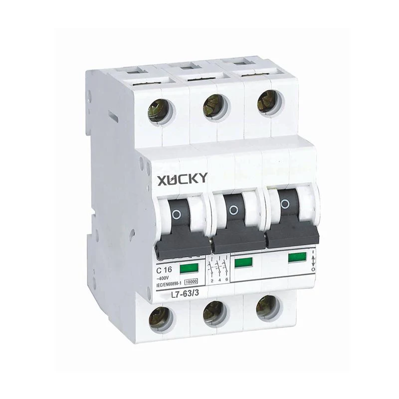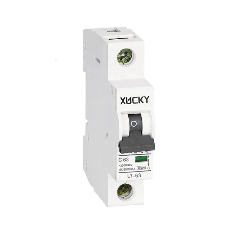 Întrerupător miniatural L7-63 al mărcii XUCKY Electric (întrerupător miniatural 10KA), utilizat în principal pentru liniile de distribuție de protecție de 50Hz/60Hz AC, tensiune nominală de 110V, 230V (220V), 400V (380V), curent nominal de 1A, 3A, 6A, 10A, 16A, 20A, 25A, 32A, 40A, 50A, 60A și 63A, capacitatea nominală de întrerupere a scurtcircuitului este de 10KA sau mai mică și este utilizată pentru liniile de realizare, rupere și conversie nu frecvente, cu suprasarcină, scurtcircuit protecţie. În același timp, 10KA MCB are module cu funcții auxiliare puternice, cum ar fi contacte auxiliare, contacte de indicație cu alarmă, declanșare șunt, control de declanșare de la distanță cu declanșare de subtensiune și alte module. Întrerupătorul miniatural L7-63 (10KA MCB) respectă standardele GB10963.1, standardul IEC60898-1.