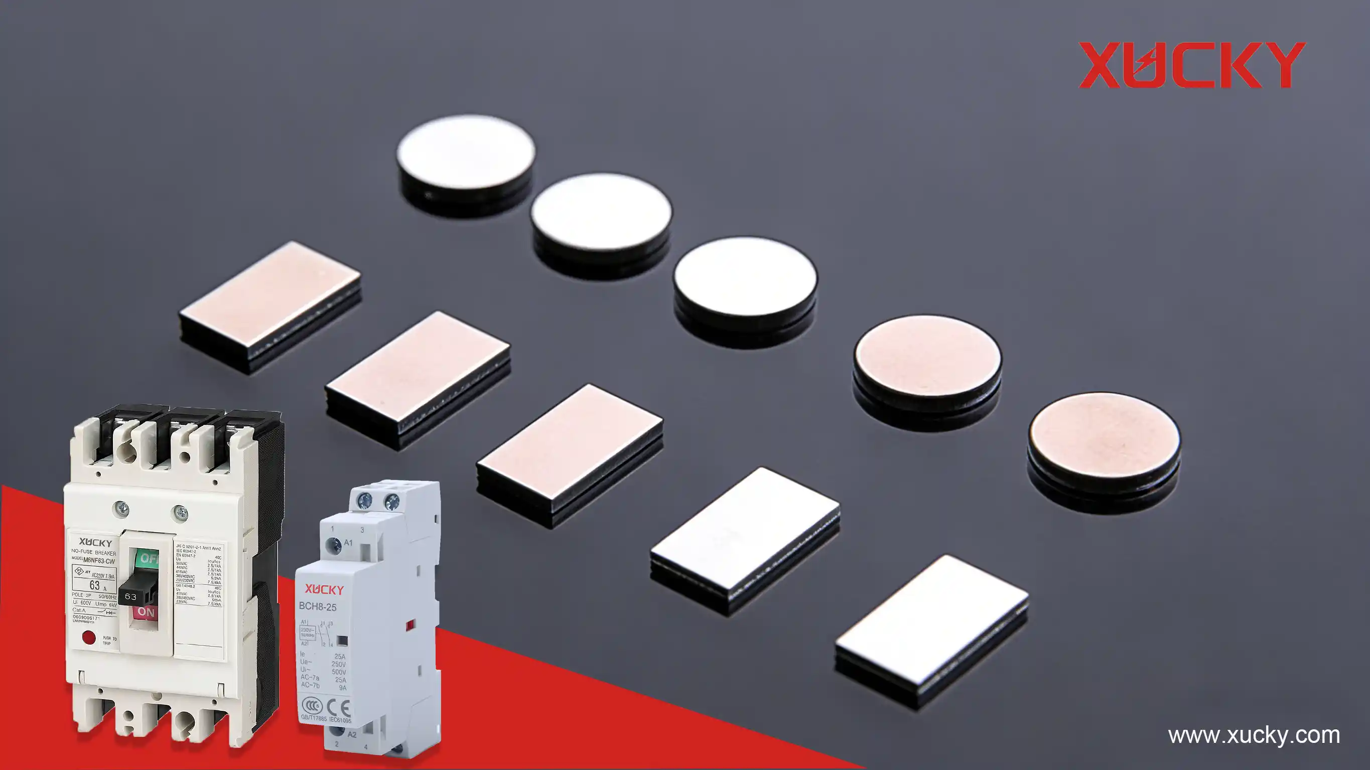 2.Mediu-tensiune (1-36kV), curent mediu (63-630A): AgSnO₂ (MCCB-uri industriale).